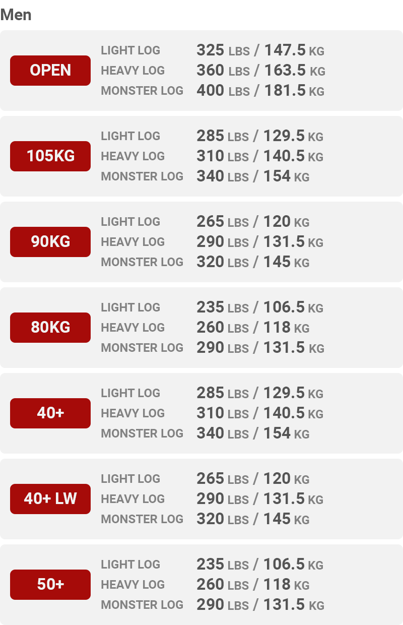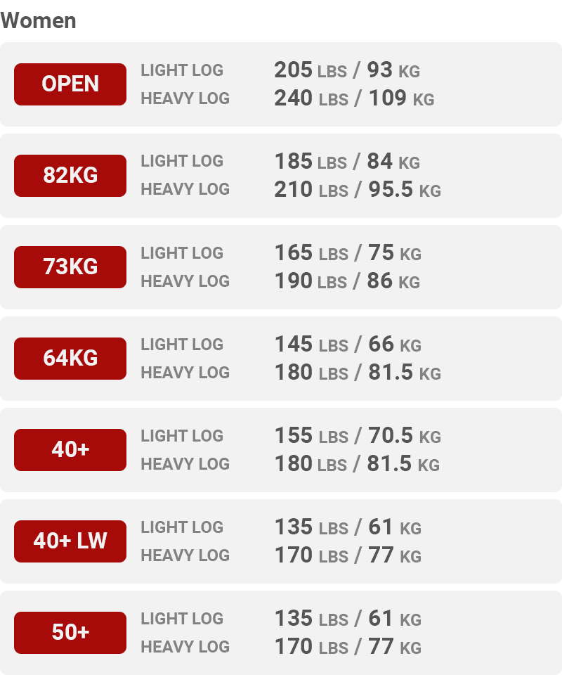 • Once time begins, athletes will clean and press each log, in ascending weight order, to full lockout.